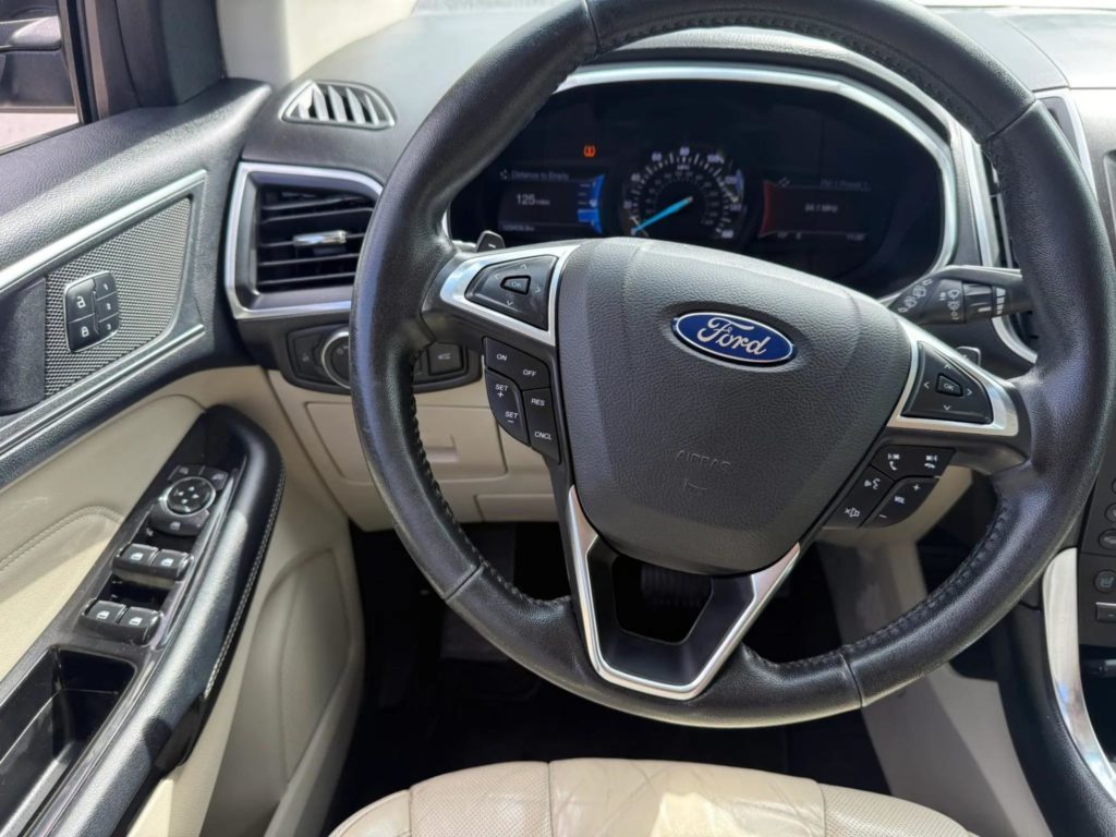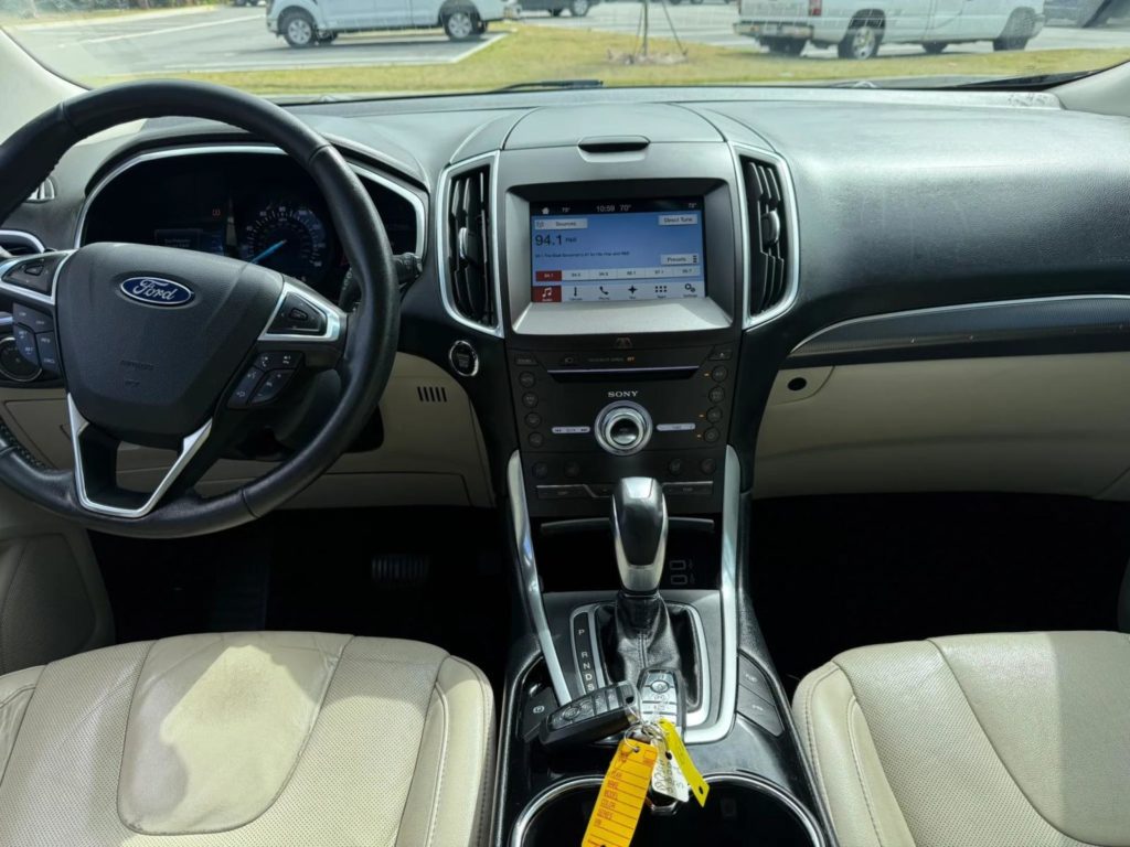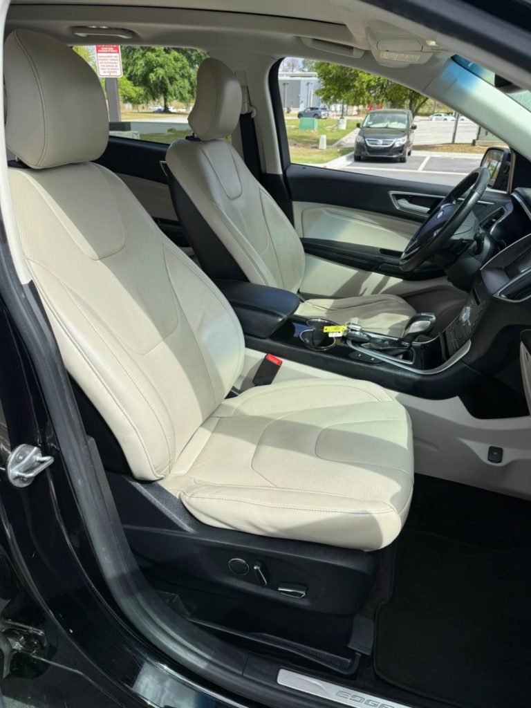 About the Vehicle: 2017 Ford Edge for sale. Platinum trim. Black exterior. Leather interior. V6 engine with 129,xxx miles. Automatic AWD transmission. All electric windows, locks, and mirrors. Navigation. AM/FM radio. Bluetooth ready. Cruise control. Panoramic sunroof. Front and rear parking sensors. Front and rear cameras. Front electric sliding seats with cooling and heated seats. Heated seats in the rear. Cold AC. Hot heat. Dual climate control.